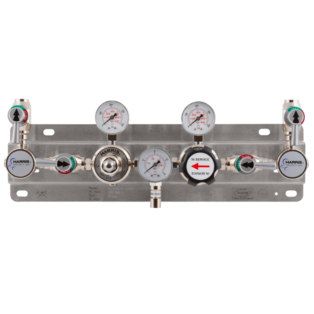 Dwustronny ręczny panel przełączający HARRIS to niezawodne urządzenie, które zapobiega przestojom dzięki możliwości ręcznego przełączania butli pomiędzy butlą główną a rezerwową. Panel ten sprawdza się doskonale tam, gdzie tolerowany jest niewielki wzrost ciśnienia podczas opróżniania butli lub jako reducja pierwszego stopnia. Oto kilka kluczowych cech tego produktu: